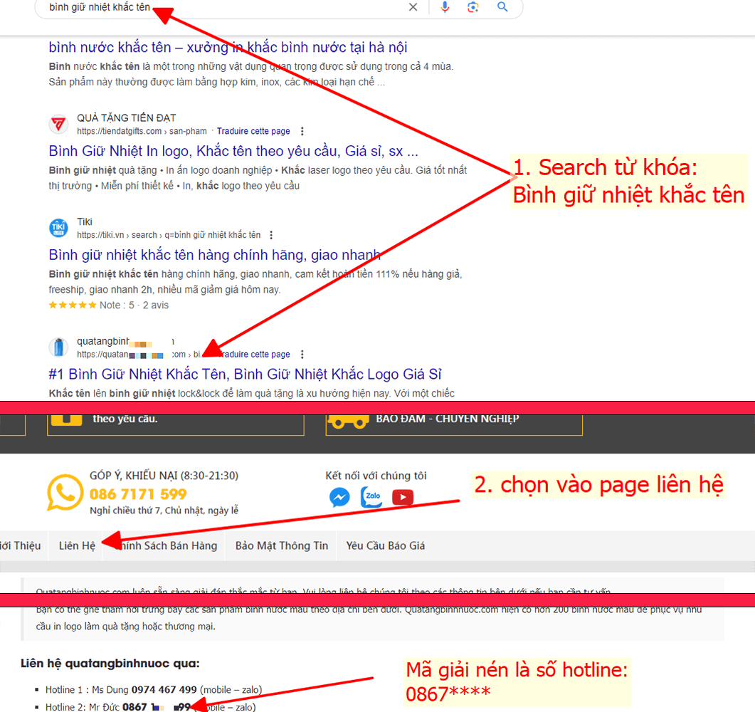 Bước 2:Tìm từ trên xuống dưới sẽ thấy trang:https://quatangbinhnuoc/***** thì click vào đấy. (xem hình ảnh hướng dẫn ở dưới)