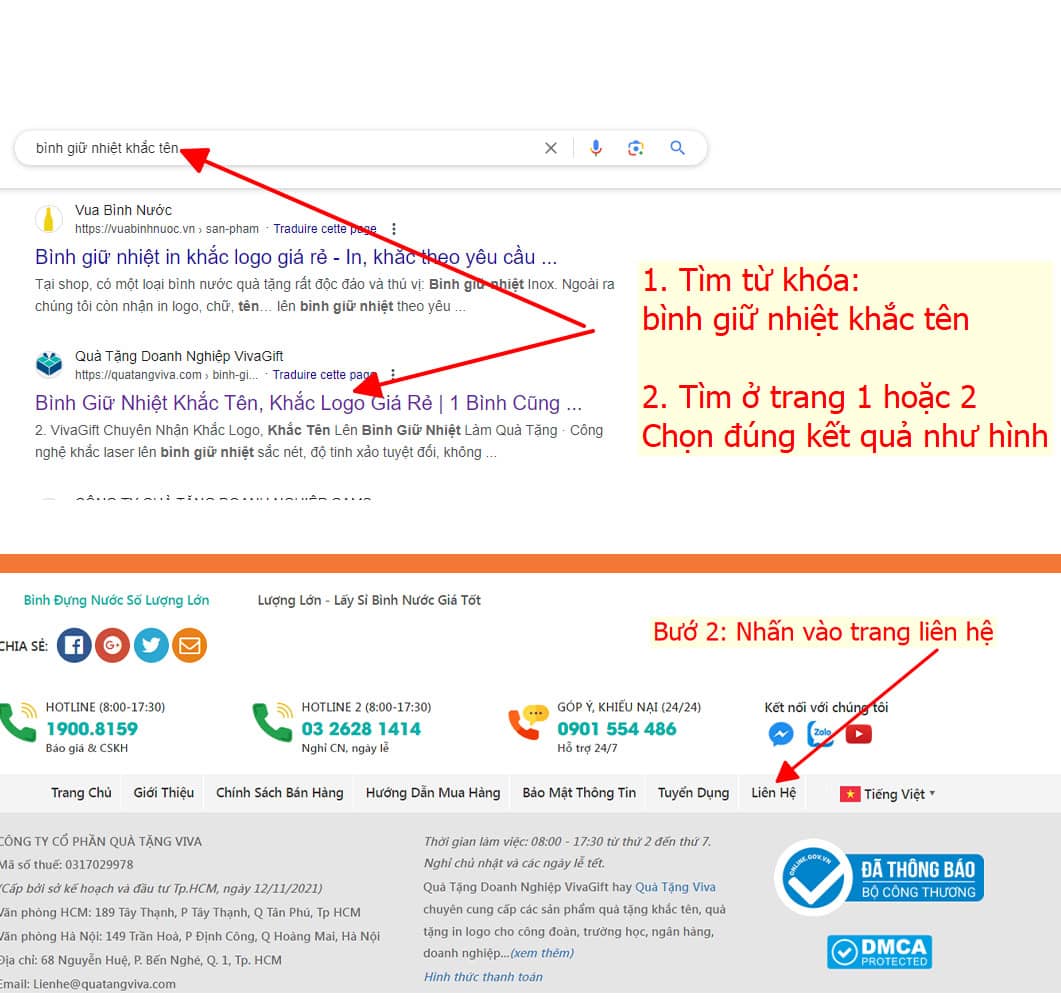 Bước 2:Tìm từ trên xuống dưới sẽ thấy trang:https://quatangviva.com/***** thì click vào đấy. (xem hình ảnh hướng dẫn ở dưới)