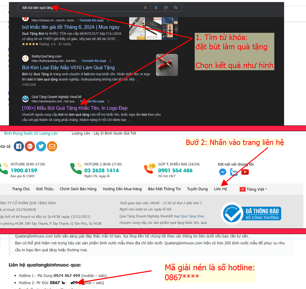 Bước 2:Tìm từ trên xuống dưới sẽ thấy trang:https://quatangviva.com/***** thì click vào đấy. (xem hình ảnh hướng dẫn ở dưới)