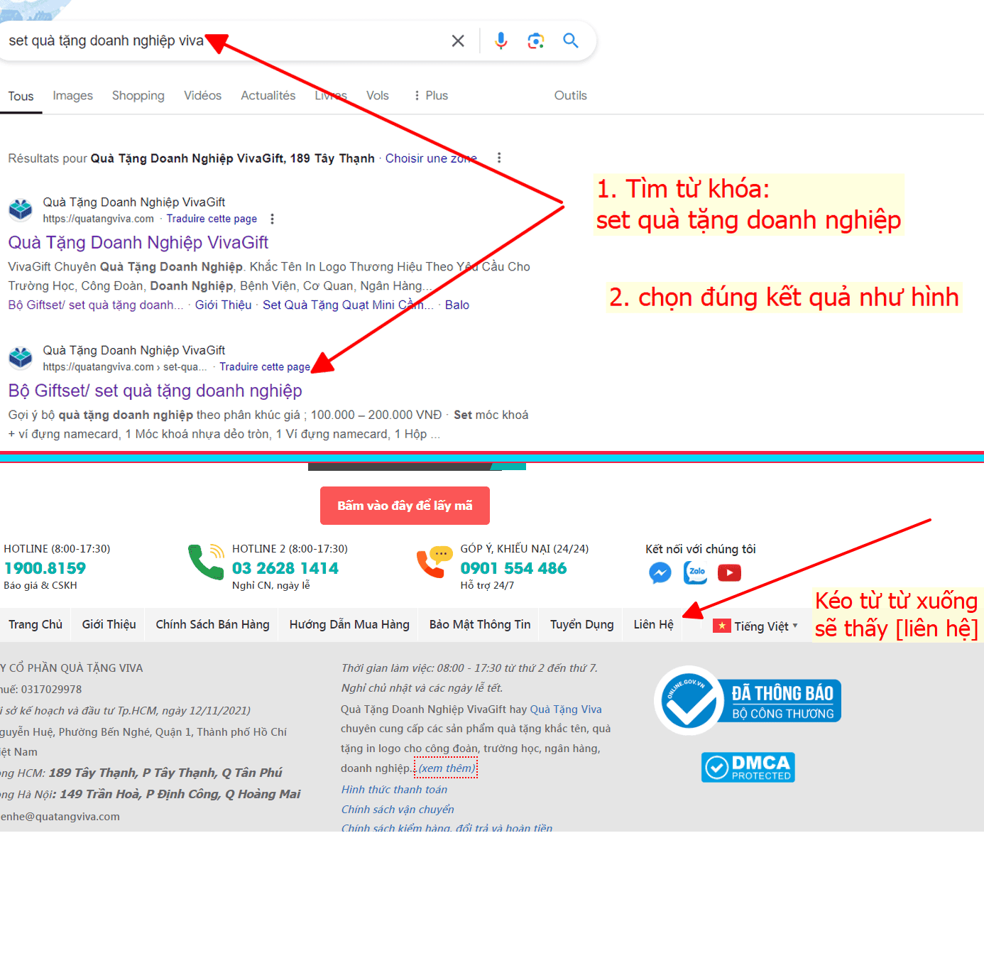 Bước 2:Tìm từ trên xuống dưới sẽ thấy trang:https://quatangviva.com/***** thì click vào đấy. (xem hình ảnh hướng dẫn ở dưới)