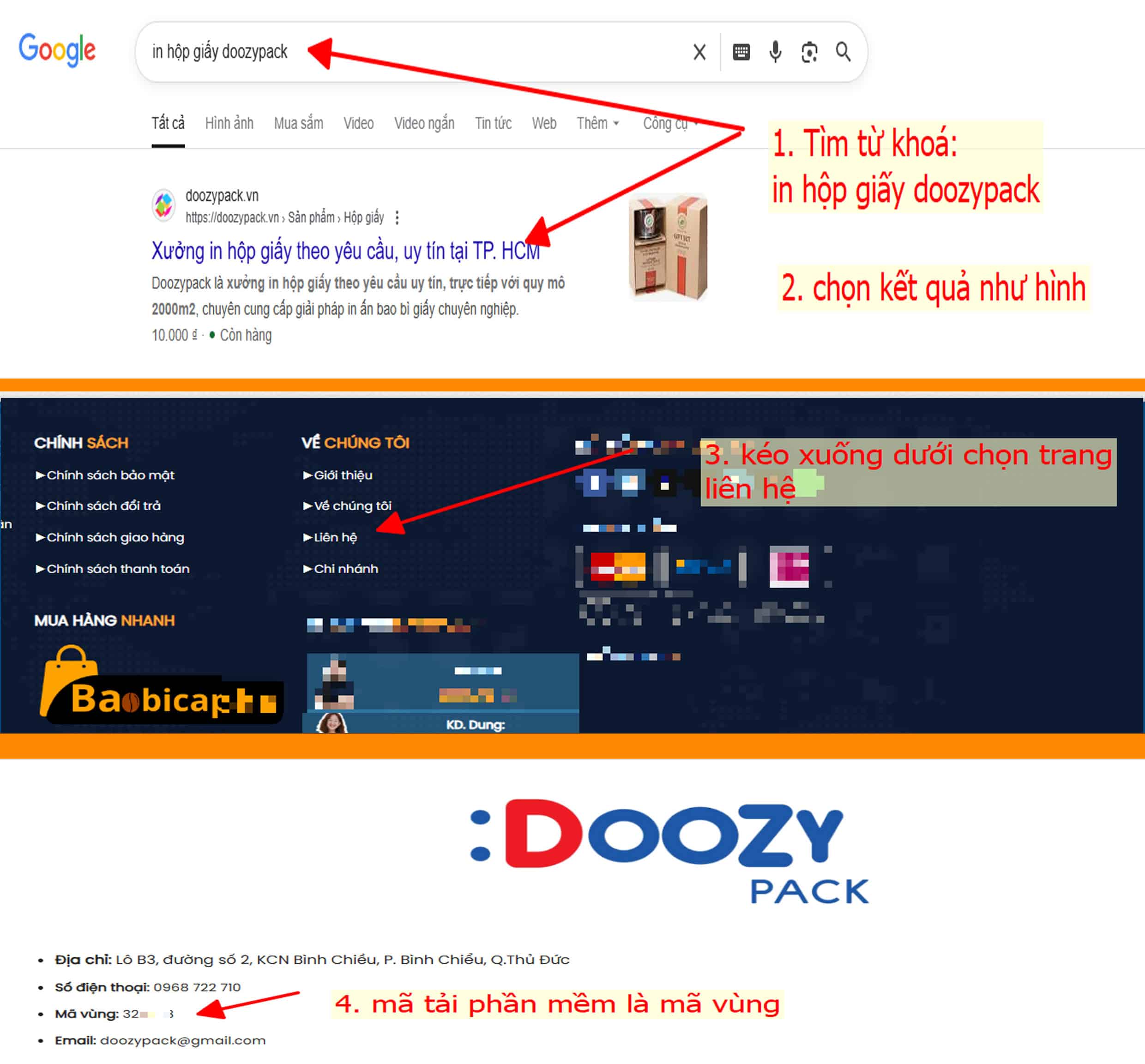 Bước 2:Tìm từ trên xuống dưới sẽ thấy trang:www.doozypack.vn/xxxx thì click vào đấy. (xem hình ảnh hướng dẫn ở dưới)