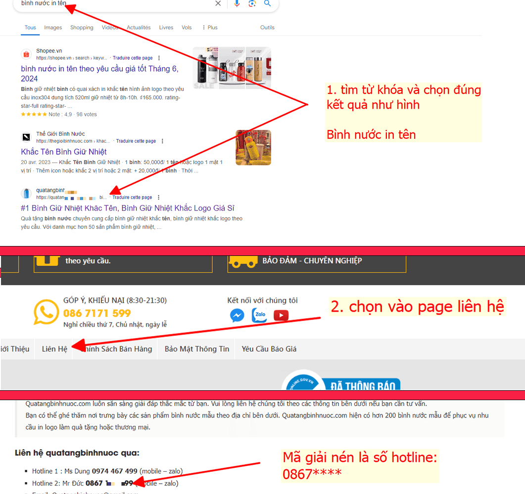 Bước 2:Tìm từ trên xuống dưới sẽ thấy trang:https://quatangbinhnuoc/***** thì click vào đấy. (xem hình ảnh hướng dẫn ở dưới)